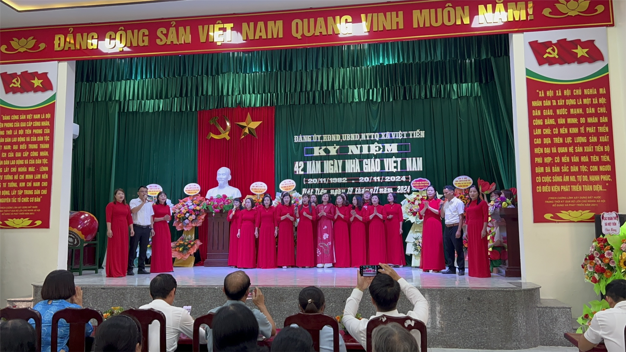 Dịp này, lãnh đạo địa phương cùng các đơn vị, doanh nghiệp, Hội cha mẹ học sinh đã tặng lẵng hoa tươi thắm, chúc mừng kỷ niệm 42 năm Ngày Nhà giáo Việt Nam, chúc các nhà trường đạt nhiều thành tích cao hơn nữa trong công tác giáo dục đào tạo, xứng đáng với truyền thống đáng tự hào của quê hương Việt Tiến.