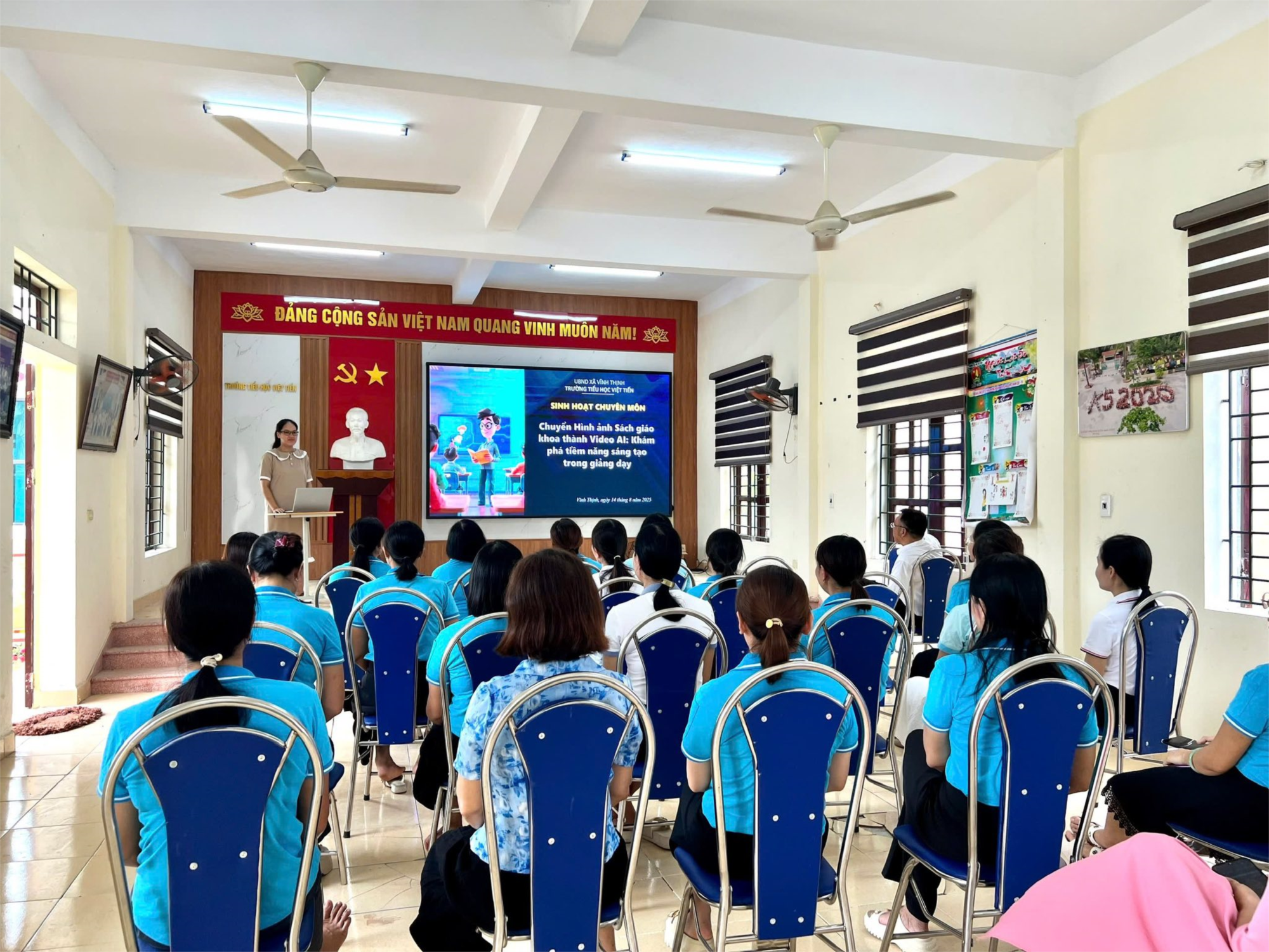 Các buổi SHCM đã tạo điều kiện cho giáo viên trao đổi ý tưởng, chia sẻ kinh nghiệm, cùng nhau tìm ra những giải pháp ứng dụng công nghệ hiện đại vào dạy học phù hợp với đặc thù học sinh tiểu học.